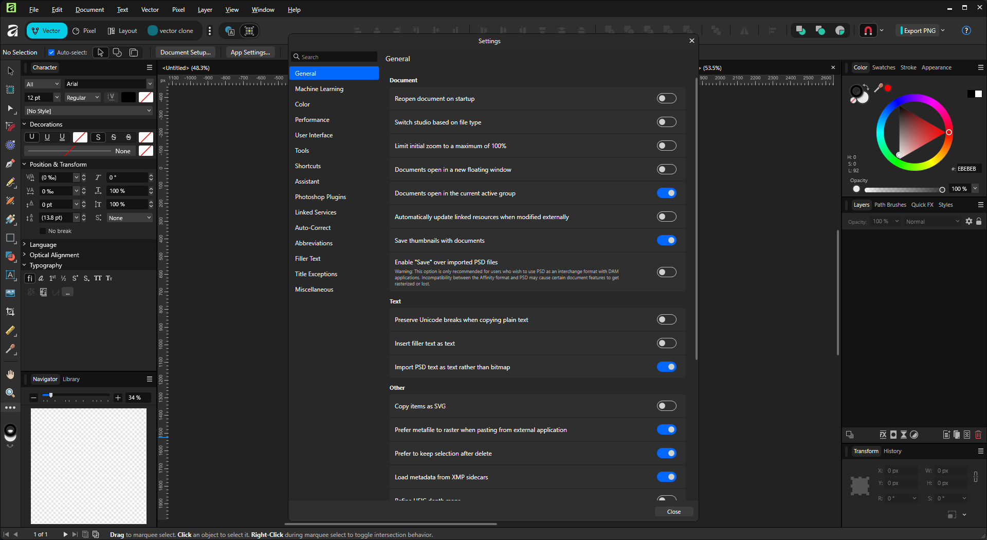 Is your workflow interrupted by file tabs detaching unintentionally? Is the active file tab difficult to find quickly due to low contrast with inactive tabs? Augmentor fixes those issues. It also increases the size of the Affinity V3 settings dialog, reducing the scrolling required for navigation. Additional features are planned and will release periodically, leading up to the official 1.0 version.
